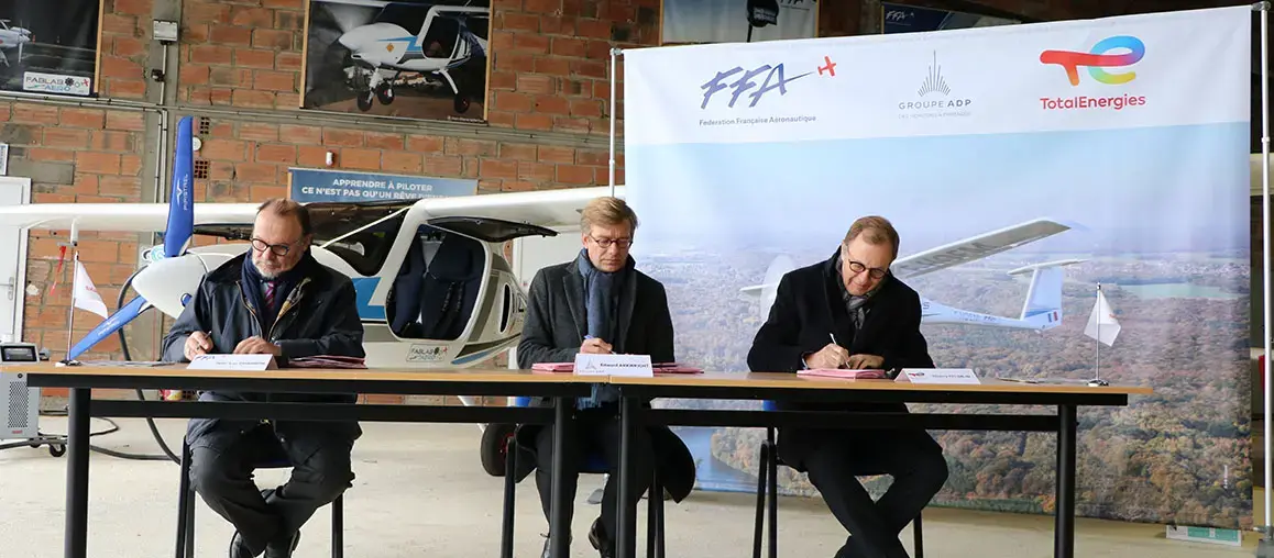 TotalEnergies, le Groupe ADP et la Fédération Française Aéronautique (FFA) s'engagent à install...
